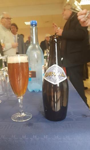 L’association « De la Somme à Bellefontaine – 22 août 1914 » avait voulu faire plaisir à son prestigieux invité, Benoît Piedboeuf, député fédéral et originaire de Bellefontaine, en proposant également de l’ORVAL, en plus des produits locaux habituels servis au pot de l’amitié à l’issue de l’assemblée générale à Daours (Somme). Le député fédéral est également bourgmestre de Tintigny, commune située à proximité de l’abbaye d’ORVAL. Que ne fut pas sa surprise de voir, qu’en France, on pouvait boire de l’ORVAL… dans des flutes à champagne. Sacrilège ! Et bien, finalement, notre invité d’honneur s’est facilement adapté.