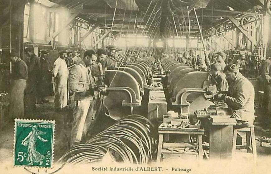 Ulysse, dès qu’il a l’âge de pouvoir travailler, se fait embaucher dans une usine en ville. L’industrie est très développée à Albert en ce début de XXe siècle. La fabrication de bicyclettes et de motocyclettes est une des spécialités des entreprises locales. Il travaille dans la fonderie Menez, Route de Bapaume. Il y a bien cinq kilomètres à parcourir à pied deux fois par jour, mais ça paie beaucoup mieux que d’être journalier pour les fermiers d’Authuille.