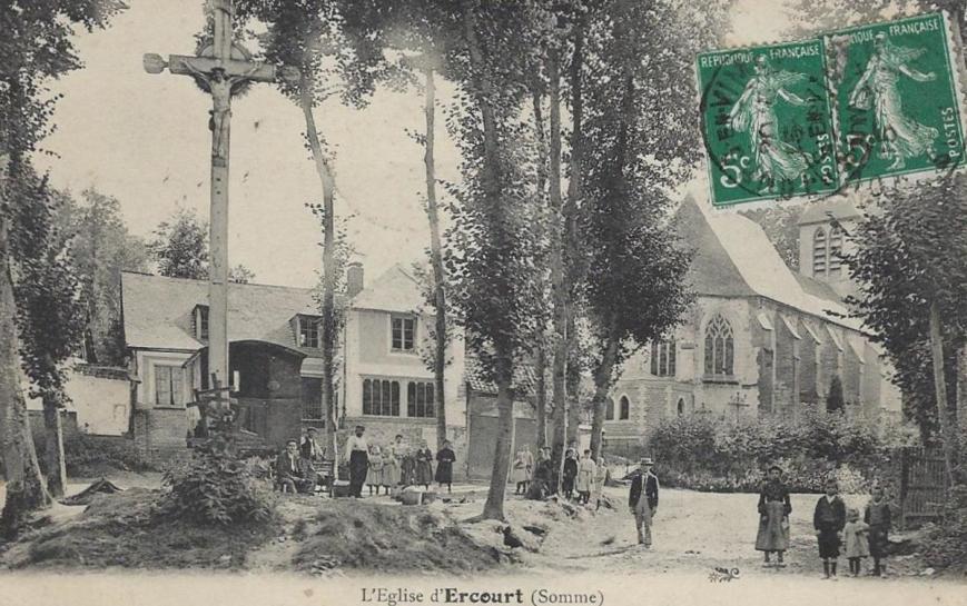 Au début du XXe siècle, à Ercourt, comme dans beaucoup de villages de campagne, les noms des rues, indiquent la direction des villages aux alentours. Ainsi, ici,  on trouve la Rue de Vismes, la Rue de Behen, la Rue de Grébault-Mesnil, la Rue de Tours-en-Vimeu et la rue de Trinquies (hameau entre Huppy et Ercourt). Complétée avec la Rue de la Place, la Rue d’En-Bas et la Rue de la Croix, où habitent les LELEU, nous avons la liste complète des rues, et fait le tour du village et de ses 71 maisons.