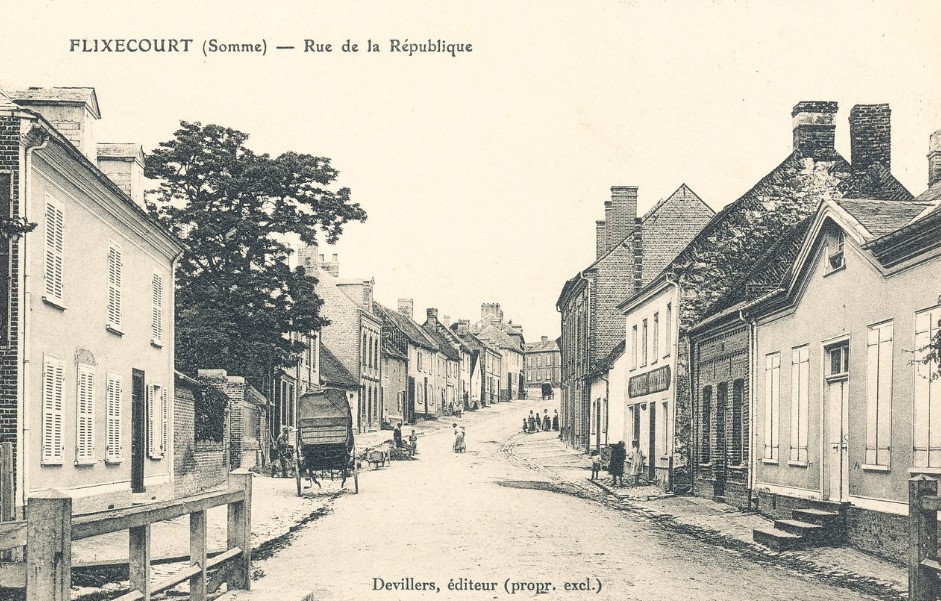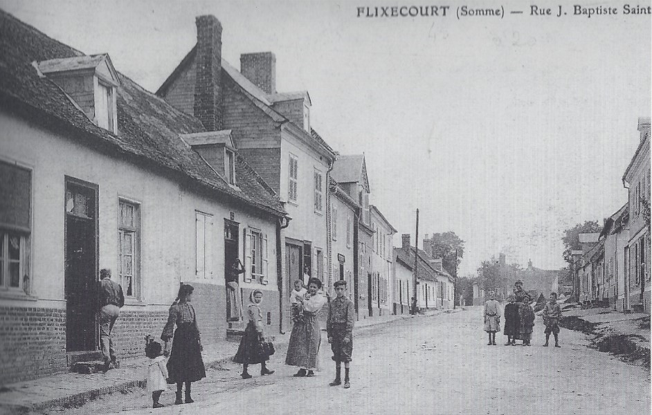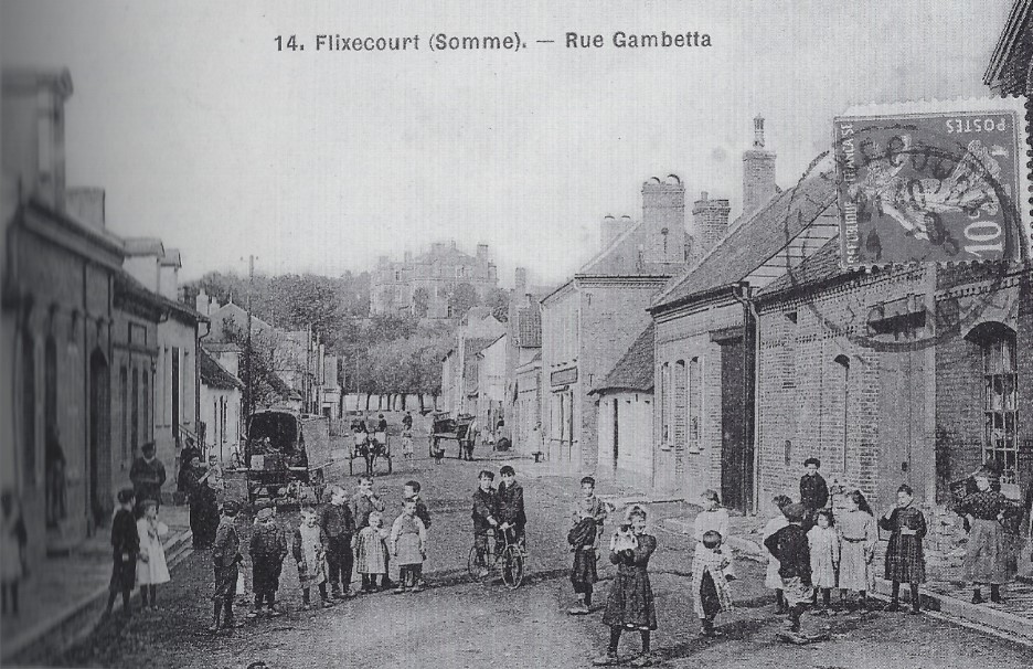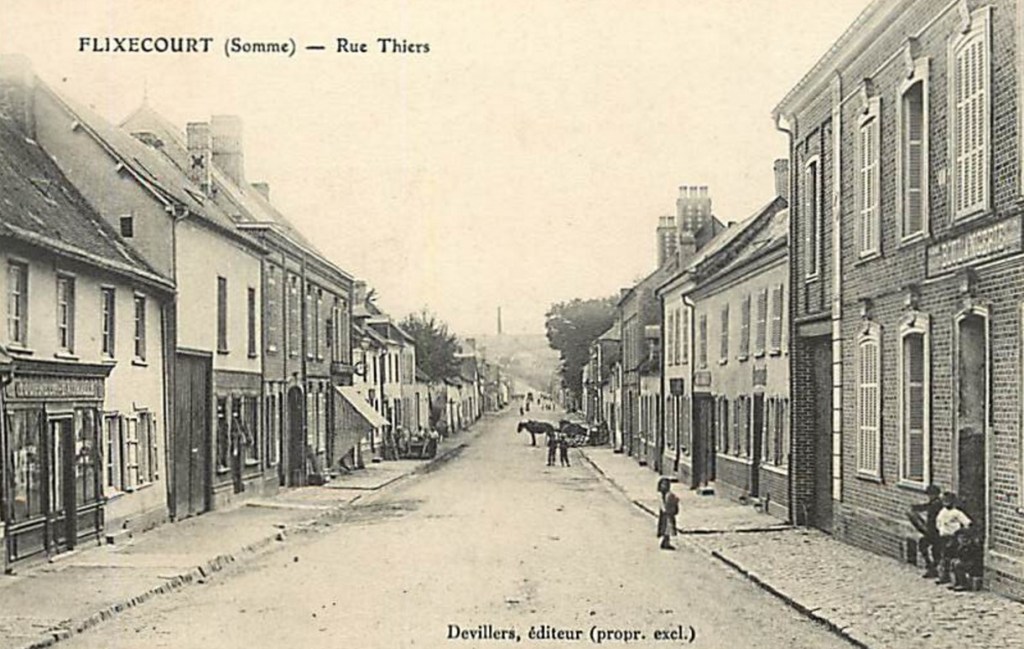 La famille déménage ensuite à Vignacourt, à 7km de Belloy, où Olga, la seule fille de la fratrie naît. Puis, les LECLERCQ trouvent enfin leur point de chute. Ils s’installent à Flixecourt, dans la vallée de la Nièvre. Habitant tout d’abord Rue Malakoff, au creux de la vallée, au pied de la grande route qui va d’Amiens à Abbeville, la famille s’installe ensuite Rue de Strasbourg, à quelques centaines de mètres, sur l’autre rive de la Nièvre. Elie exerce toujours son métier de boulanger. Il est employé chez Montpetit, Rue de la République, puis Rue Thiers.