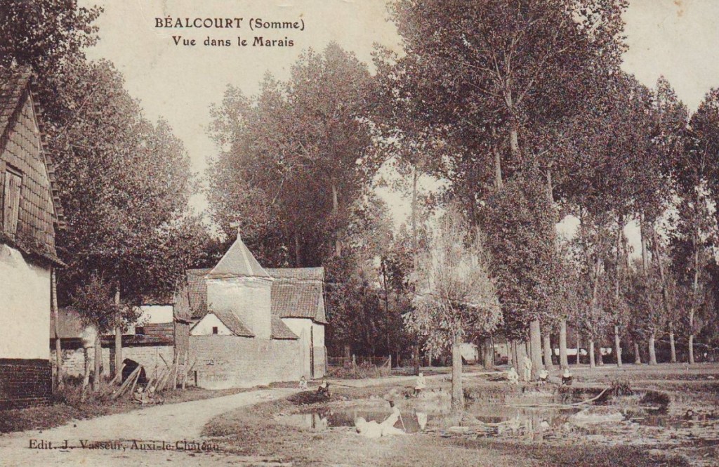 Achiles a épousé Célina, une fille du village voisin de Beauvoir-Rivière, dans le Pas-de-Calais. Toute la vie des CARDON se passe entre Somme et Pas-de-Calais. Le village de Béalcourt se trouve au coeur des marais, dans la Vallée de l’Authie, rivière qui est la frontière naturelle entre les deux départements.