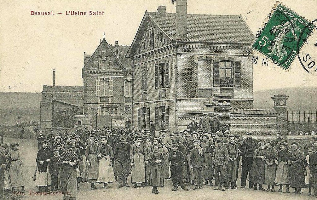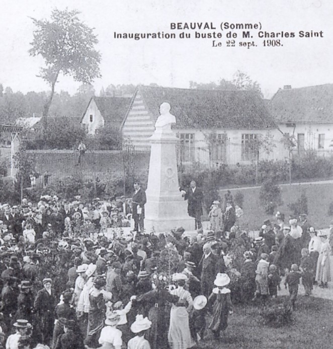 Beauval est une ville importante qui compte près de 2 500 habitants en cette fin du XIXe siècle. L’industrie textile a permis à la commune de se développer considérablement. Avant de créer de gigantesques usines textiles dans les vallées de la Nièvre et de la Somme, entre Amiens et Abbeville, c’est à Beauval, ville d’origine de leur famille, que l’aventure des frères Saint a débuté. Au début du XIXe siècle, les trois fils d’un tisserand de Beauval, après s’être associés, avaient créé leur entreprise de toiles d’emballage employant déjà plusieurs centaines de tisserands. Après l’introduction de la fibre de jute en France, vers 1850, ils ont alors transformé leur entreprise pour y produire de la toile de jute et ont créé d’autres fabriques à Flixecourt, à Harondel, à Berteaucourt-les-Dames…