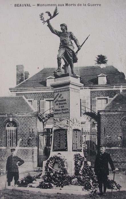 Le nom d’Achille POIRÉ est gravé sur le monument aux morts de Beauval. Celui de son jeune frère, non mort « en service commandé » n’y figure pas. La paroisse a, heureusement, dépassé toutes ces considérations administratives de la gestion des « bons ou des mauvais morts » de la guerre. Les noms des deux frères sont inscrits sur la plaque commémorative dans l’église Saint-Nicolas. Une église dont la construction a été intégralement financée, à la fin du XIXe siècle, par Charles Saint, le riche industriel du textile, bienfaiteur de la commune de Beauval.