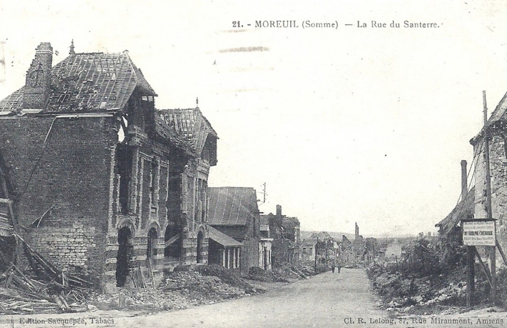 Quand le 12 juillet 1916, le régiment prend la route vers la Somme où les Britanniques ont subi une effroyable défaite quelques jours plus tôt, les deux copains survivants, Henri GEORGET et Georges DELACROIX sont heureux de retrouver leurs terres. Ils cantonnent tout d’abord dans des baraquements sous les bois, près de Villers-Bretonneux, et se rapprochent ensuite du front, fin juillet, en s’installant à Proyart, puis à Chuignolles. Les combats sont difficiles et pour chaque tranchée ennemie conquise beaucoup de sang est versé. Les Français progressent mais très lentement. Le 6 septembre dans l’attaque pour tenter de reprendre aux Allemands le village de Berny-en-Santerre, Henri GEORGET, le copain de la Petite Rue d’Amiens à Moreuil, est tué.