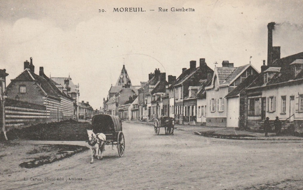 Chef-lieu de canton de la Somme situé à égale distance d’Amiens et de Montdidier, dans la Vallée de l’Avre, Moreuil est un bourg de plus de 3 000 habitants à la fin du XIXe siècle.