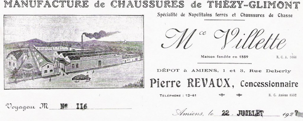 A Thézy-Glimont, la principale industrie est celle de la chaussure. Une fabrique installée Rue Cadet occupe plus de 130 ouvriers et ouvrières, soit dans l’atelier, soit dans les maisons. Ulphius et Antonia sont employés dans la fabrique Villette.  Il est cordonnier et elle est piqueuse. Les chaussures sont essentiellement expédiées vers Paris et vers l’Alsace-Lorraine. Le petit village a la chance de disposer d’une halte sur la ligne de chemin de fer reliant Montdidier à Amiens.