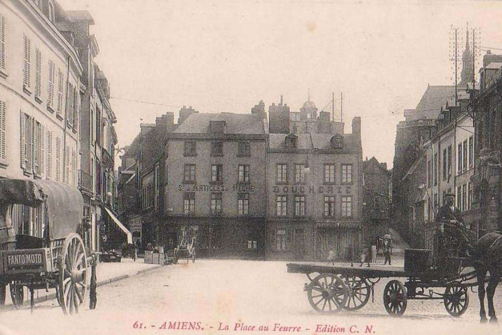 Auguste et Juliette OVAERE, les parents de Marcel, sont originaires des Flandres. Auguste a rencontré Juliette, une fille d’Armbouts-Cappel. Ils se marient à Dunkerque et viennent s’installer à Amiens dans la Somme. Auguste est menuisier. Le travail ne manque pas dans la grande cité picarde. La famille habite Place au Feurre, à quelques dizaines de mètres de la Cathédrale Notre-Dame.