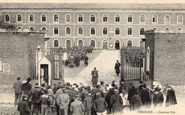 Finalement, la chance sourit un peu aux trois Villérois puisque, suite à la réorganisation des unités de la Région militaire d’Amiens, si la partie la plus importante du régiment reste casernée à Amiens, plusieurs compagnies du 72e RI sont installées à Péronne. La caserne Foy vient d’être libérée par le 120e RI. Le régiment de Péronne a quitté la Somme pour rejoindre le département de la Meuse. La cité de Péronne n’est distante de Villers-Faucon que de 15 kilomètres.