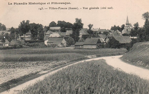 Villers-Faucon est un bourg assez important du canton de Roisel. Il compte près de 1 400 habitants au début du XXe siècle. L’activité agricole y est prépondérante mais on compte également plusieurs fabriques. La plus grande d’entre elles est la fabrique de sucre située dans le hameau de Leuilly. La gare située sur la ligne de chemin de fer de Vélu à Bertincourt permet de relier la commune aux réseaux ferrés vers Saint-Quentin et vers Amiens.