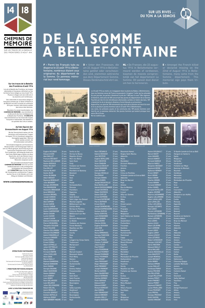 Une importante délégation venue de France sera présente à l’initiative de notre association pour honorer plus particulièrement les 191 jeunes hommes du département de la Somme tués dans la plaine du Radan et les centaines de copains du 120e Régiment d’Infanterie (et d’autres unités du 2e Corps d’Armée d’Amiens) qui y ont combattu. En ce mois d’août 1914, le combat de Bellefontaine était leur épreuve du feu. Surpris par les mitrailleuses des Allemands installés dans les bois, certains jeunes Français n’ont peut-être même pas tiré une balle avant de s’écrouler. Ils avaient tous entre 20 et 24 ans.