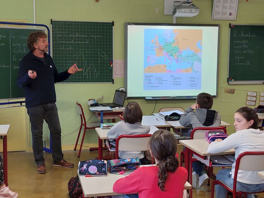 Notre association « De la Somme à Bellefontaine » est intervenue le 22 novembre dernier à l’Ecole Jules Verne de Mers-les-Bains pour y parler de la Grande Guerre devant les élèves de CM2 de la classe de Ludovic PORTENART. En complément des aspects liés au contexte historique de la Première Guerre mondiale qui avaient déjà été présentés en classe par l’enseignant, Xavier BECQUET, le représentant de l’association a présenté le contexte local. Il a évoqué plusieurs parcours de vie de jeunes hommes de Mers victimes de la guerre.