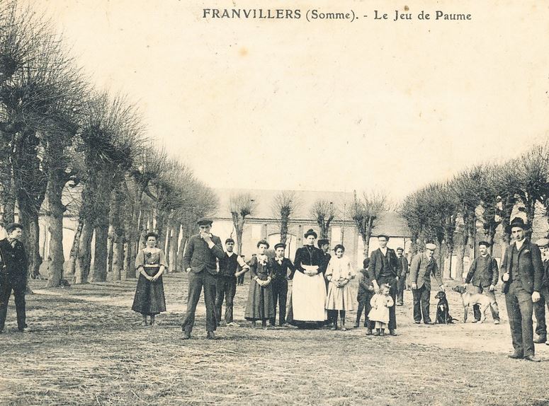 Arthur et Marcel JUMEL, les deux garçons nés en 1891 vivent une grande partie de leur enfance ensemble. Ils sont scolarisés dans la classe d’Emile BOULAN, l’instituteur public du village. Comme tous les autres enfants de leur âge, ils se retrouvent également le dimanche sur les bancs de l’église Saint-Cyr-et-Sainte-Julitte. C’est aussi sur les chemins, dans les pâtures et dans les bois de Franvillers que se vit l’enfance des garçons. Et bien sûr sur le terrain de Jeu de Paume placé au centre du village.
