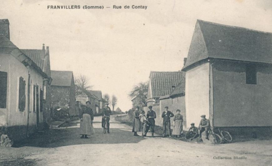 Franvillers est un village qui compte environ 700 habitants. L’activité principale est l’agriculture mais l’artisanat à domicile y est très développé. On trouve encore une vingtaine de métiers à tisser dans la commune et une cinquantaine d’ouvriers et d’ouvrières qui font des chaussures en cuir. Dans la commune il y a deux boulangers et au moins six débits de boissons servant également d’épicerie. Les marchés hebdomadaires les plus proches sont à Corbie et à Amiens.