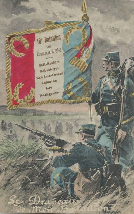 Le 18e BCP était caserné à Stenay dans la Meuse jusque début octobre 1913. Afin de libérer des locaux pour accueillir les effectifs du 120e Régiment d’Infanterie de Péronne, le 18e BCP a quitté sa caserne Chanzy pour rejoindre le 9e BCP dans la caserne Lamy de Longuyon.