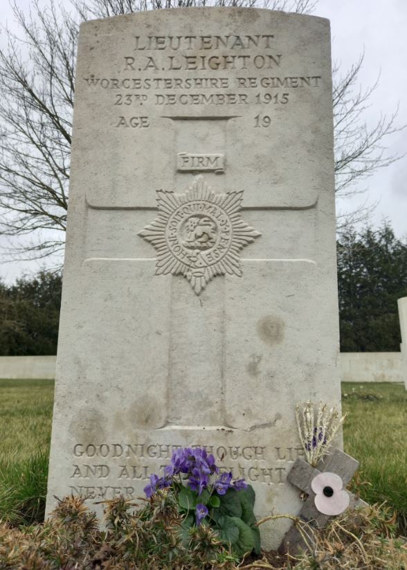 A Louvencourt dans la Somme, quand il a été frappé par cette balle allemande, une nuit de pleine lune de l’hiver 1915, le jeune fiancé de Vera n’avait que 20 ans. Roland LEIGHTON repose pour toujours dans le sol du petit village de Louvencourt. Et si vous passez par-là, n’hésitez pas à lui déposer quelques violettes.