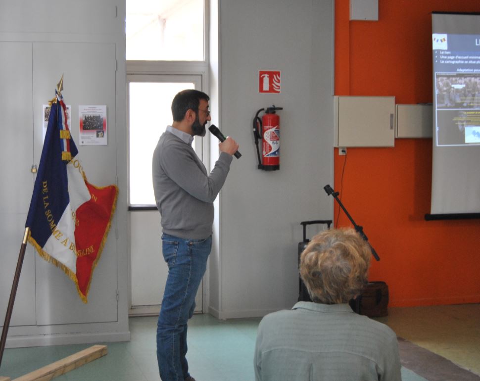Lionel JOLY et Philippe DEGROOTE ont ensuite présenté le grand projet de l’association. Il porte le nom de « De la Somme à la Saulx », nom d’une rivière qui coule dans le Sud du département de la Marne. C’est dans ce secteur que 1 713 jeunes hommes affectés dans des régiments de la région militaire d’Amiens ont été tués entre le 6 et le 10 septembre 1914. Avec l’aide de 12 bénévoles, des recherches menées pendant 6 mois l’an dernier ont permis d’obtenir des informations sur chacune de ces victimes.