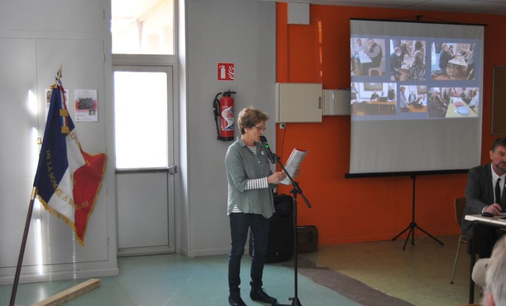 Michèle STOCKLIN-BECQUET, secrétaire de l’association, a présenté les activités réalisées par l’association en 2022. Expositions et conférences à Péronne et à Harbonnières ; permanences d’aide à la recherche individuelle dans les Archives organisées dans 9 communes de la Somme (Daours, Fouilloy, Lanchères, Mers-les-Bains, Roye, Vecquemont, Yonval, Cardonnette, Toeufles); séjour commémoratif pédagogique entre Ardennes et Belgique sur les lieux de combats du début de la Grande Guerre pour un groupe de 60 personnes au départ de la Somme; cérémonie commémorative organisée à Fontenois, dans les Ardennes, pour rendre hommage aux victimes du 31 août 1914; intervention en milieu scolaire pour des élèves de CM2; animation de cérémonie du 11 novembre ainsi que de nombreuses actions de recherches ont été menées par les bénévoles de l’association.