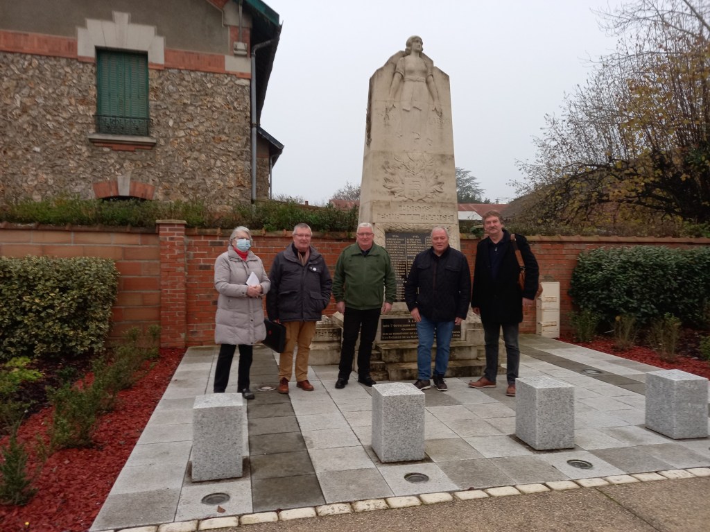 7 décembre 2022 : des membres de l’association à Pargny-sur-Saulx avec le président des Anciens Combattants et le maire (de gauche à droite : Danièle REMY, Philippe DEGROOTE, Alain PAUPHILET, Jean-Claude CABART, Xavier BECQUET ) pour lancer le projet « De la Somme à la Saulx »