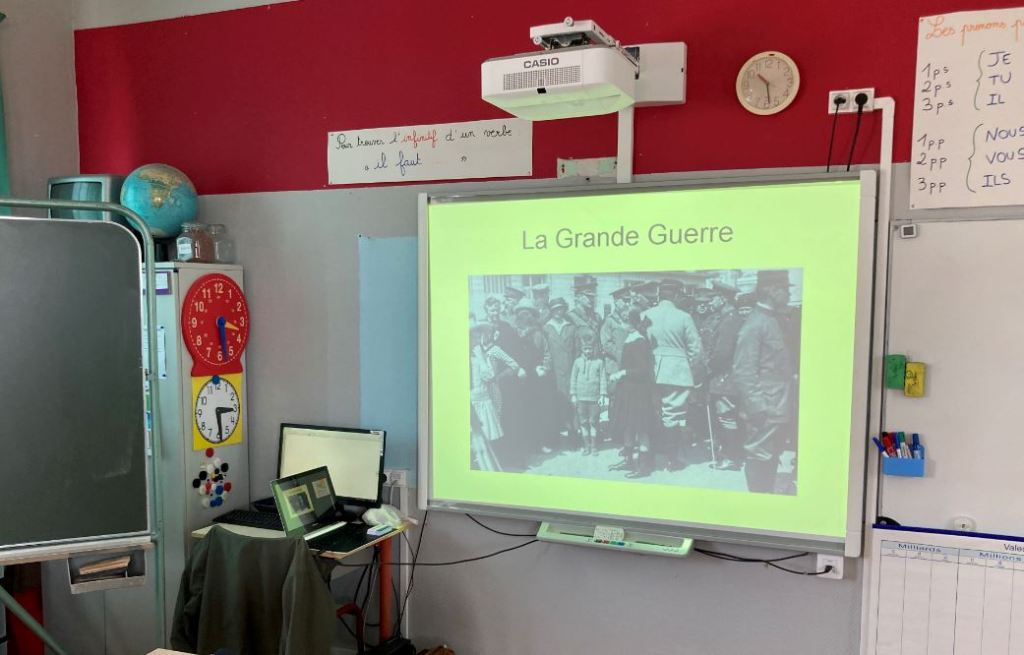 Philippine CAYEUX, enseignante à l’école de la Cité du Nord, a répondu immédiatement à notre proposition avec enthousiasme. Conformément au programme d’enseignement de l’Histoire en Cycle 3, elle s’est attachée à traiter en profondeur le thème de la Première Guerre mondiale avec ses élèves avant la date de l’intervention programmée le 11 mai.