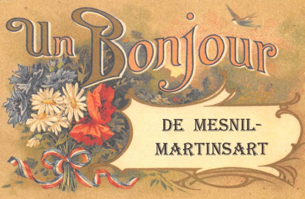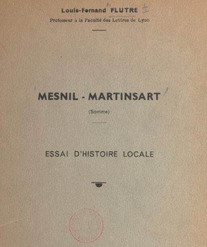 « La première guerre mondiale a été des plus funestes pour la commune de Mesnil-Martinsart, restée pendant quatre ans en pleine zone des combats. Les deux villages ont été rasés par les bombardements, les habitants évacués et dispersés. Beaucoup d’entre eux ne sont jamais revenus. Puis les vieux sont morts progressivement. Aussi n’y a-t-il plus aujourd’hui que quelques personnes qui aient connu le Mesnil et le Martinsart d’avant 1914. J’ai, si je puis dire, le privilège d’être de celles-là. Bien que n’habitant plus depuis un demi-siècle mon village natal, je n’ai jamais cessé d’être en intime contact avec lui, y revenant chaque année passer une partie de mes vacances. Je n’y ai plus, hélas ! ma bonne vieille ferme familiale : écrasée par les obus allemands, elle a été remplacée par une quelconque maisonnette en briques ; mais j’y possède encore les champs qu’ont labouré mes aïeux et surtout la tombe où reposent mes parents… » Louis-Fernand FLUTRE, août 1954 (Mesnil-Martinsart : essai d’histoire locale)