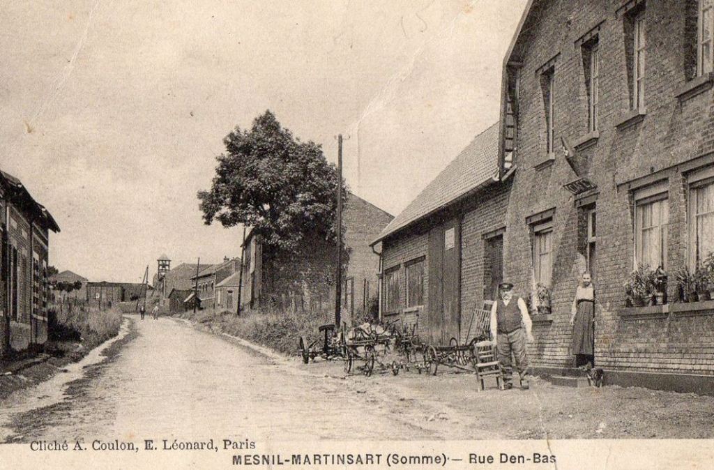 Ernest ROUVILLAIN est fermier comme l’étaient son père Edouard, son grand-père et son arrière-grand père prénommés tous les deux Félix. La ferme ROUVILLAIN est située au même endroit depuis le début du XIXe siècle, peut-être même avant. Et ne dites pas aux ROUVILLAIN qu’ils habitent Mesnil-Martinsart, ils habitent au chef-lieu de la commune : à Mesnil. Ils résident dans la rue de Martinsart à Mesnil. La commune est composée d’un chef-lieu, Mesnil ; d’un hameau, Martinsart ; de trois lieux-dits, la gare, le moulin et Lambourg.
