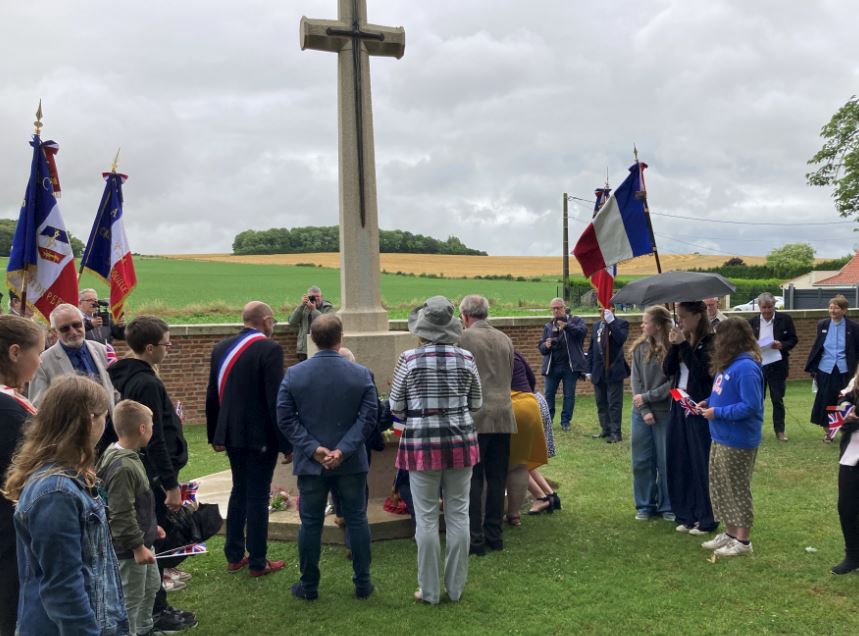 En 2023, en ce jour hautement symbolique pour les Britanniques du 1er juillet (1), le crucifix a retrouvé sa place dans l’église reconstruite Notre-Dame de l’Assomption de Doingt. Une cérémonie particulièrement émouvante et chaleureuse a été organisée par l’association Mémoire de Doingt-Flamicourt en partenariat avec la commune et les membres de la délégation anglaise.