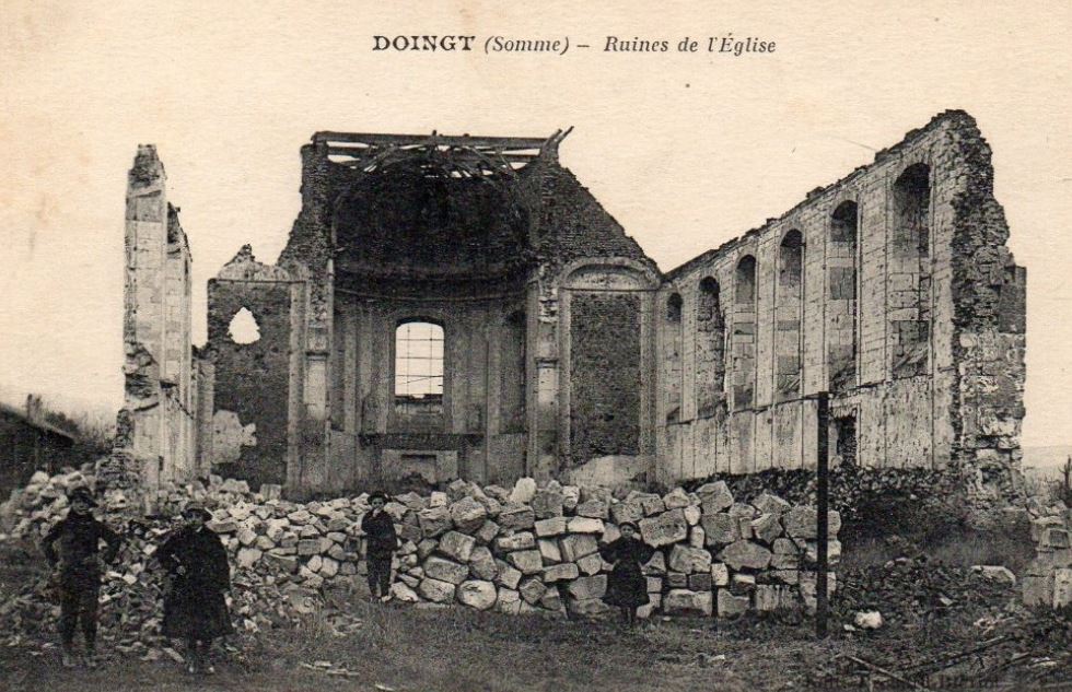 A Doingt, petit village mitoyen de la cité de Péronne, comme dans tous les villages, les dégâts sont très importants. L’église Notre-Dame de l’Assomption a été détruite.