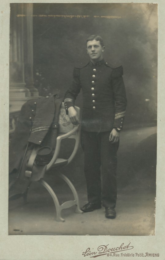 En octobre 1912, Gaëtan CAUET est incorporé au 72e Régiment d’Infanterie pour y effectuer son service militaire. Il rejoint la caserne Friant, Avenue Foy à Amiens. De nombreux collègues instituteurs de la Somme sont affectés dans ce régiment amiénois. Gaëtan a hâte que cette période de deux années sous les drapeaux se termine pour aller exercer son métier dans un village du département. Il sait qu’il devra changer deux ou trois fois avant d’avoir enfin l’attribution d’un poste d’instituteur titulaire. Il deviendra alors le maître d’école et pourra enseigner à plusieurs générations du même village, comme son père l’a fait à Vaire-sous-Corbie.