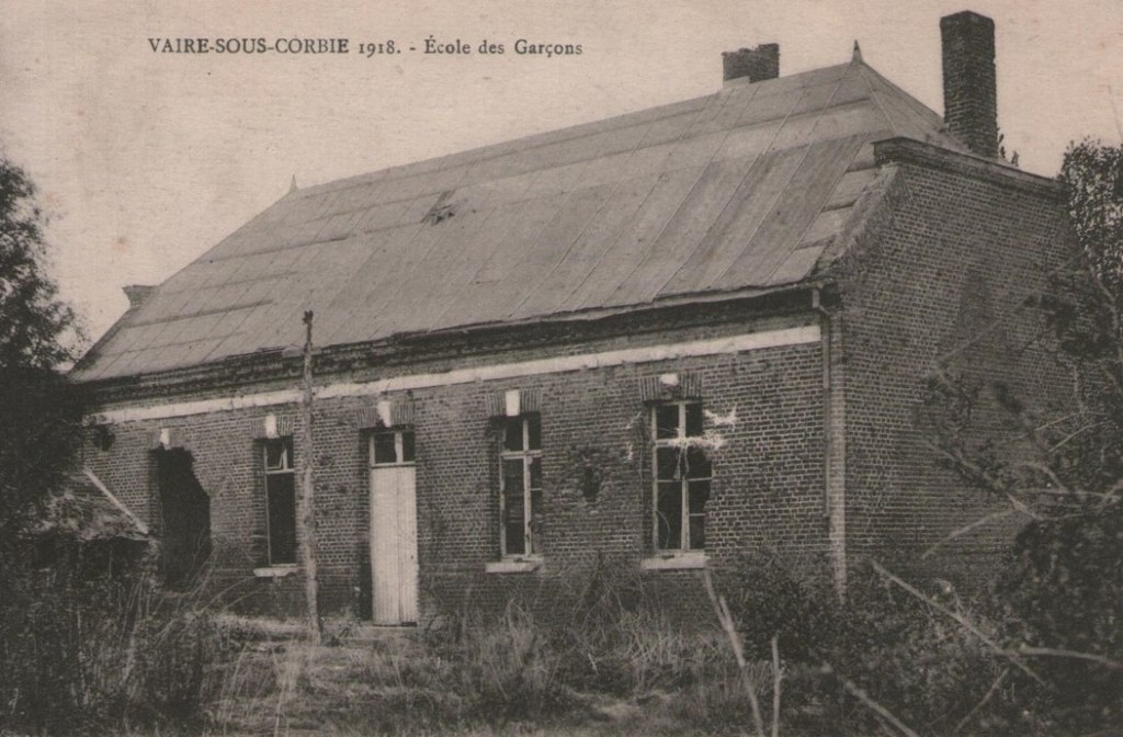 Plusieurs habitations de Vaire-sous-Corbie ont été endommagées pendant les combats du printemps 1918 autour de Villers-Bretonneux et de Le Hamel. L’école du village a été touchée.