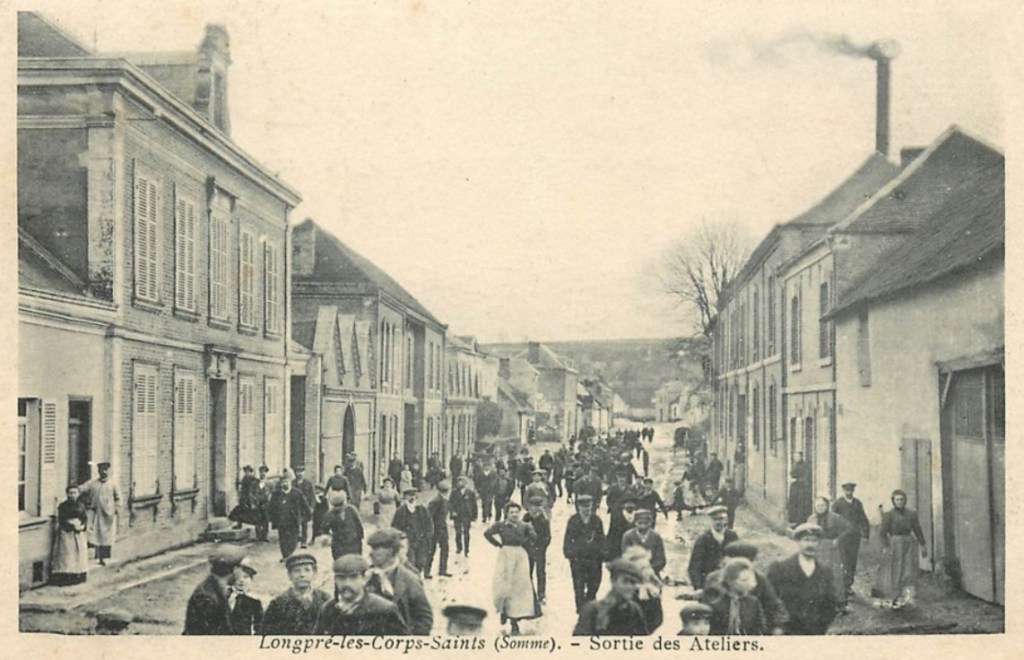 Libéré de ses obligations militaires, Eugène s’installe alors, avec sa femme et ses deux garçons à Longpré-les-Corps-Saints dans la Rue Aux Sacs, à moins de 5 km de Bouchon. L’industrie du textile est en expansion dans le département de la Somme en cette fin du XIXe siècle. L’eau courante de la Somme et de son affluent, la Nièvre, est utilisée pour actionner la force motrice dans les usines textiles. De retour du service militaire, Eugène FLANDRE père est embauché dans l’usine de fabrication de bâches de Longpré-les-Corps-Saints.