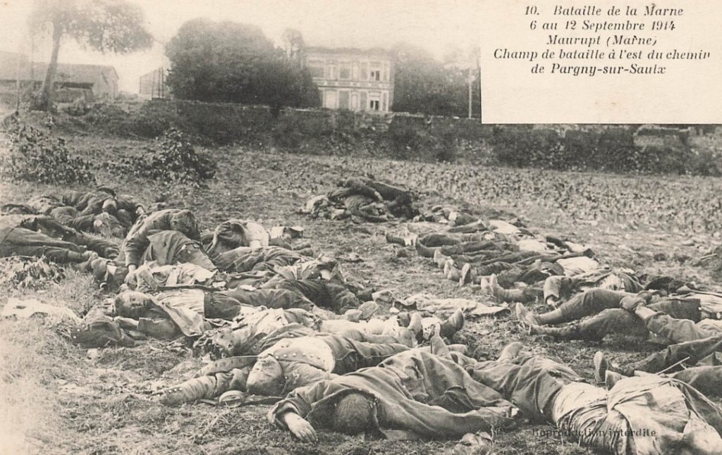 Sur tous les champs de bataille du 22 août, la mort a durement frappé. Plus de 25 000 Français ont perdu la vie. La Retraite de l’Armée française emmène Emile FLANDRE vers la Marne, près de Vitry-le-François, plus précisément à Sermaize-les-Bains. Du 6 au 10 septembre 1914, le 120e RI perd encore plusieurs centaines d’hommes. Même si l’objectif initial est atteint, les combats pour empêcher les Allemands de progresser vers Paris sont très meurtriers. Près des 2 tiers des effectifs du 120e RI qui ont commencé la guerre ne sont déjà plus là. Emile FLANDRE a vécu un nouveau miracle. La mort n’a pas voulu de lui. Tant de copains de la Somme ont disparu à ses côtés, ont souffert, ont crié de douleur près de lui à Sermaize-les-Bains et à Maurupt-le-Montois.