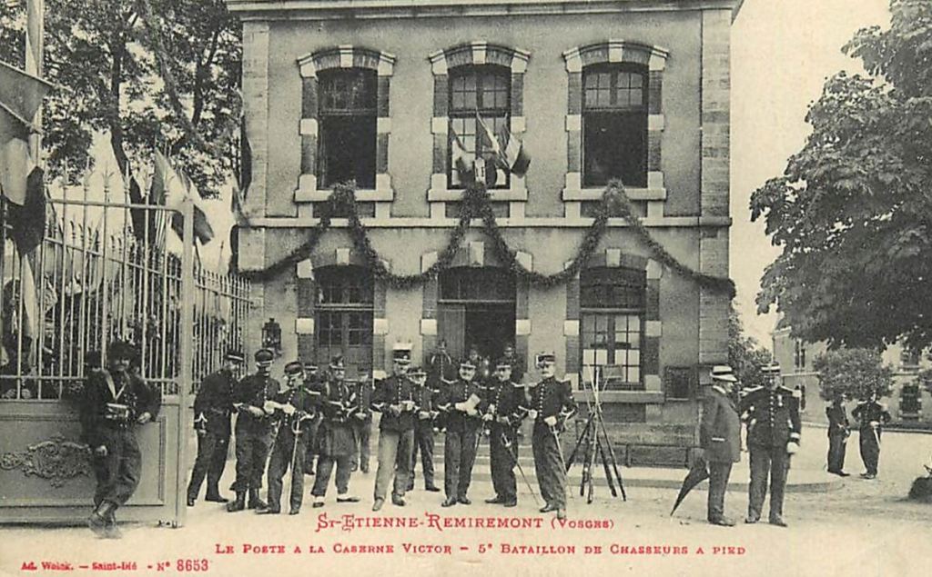 En 1909, c’est au tour de René DUBUQUOY, le benjamin de la fratrie, d’être convoqué devant le Conseil de Révision installé pour l’occasion en mairie de Nesle. Jugé apte au service armé, il est envoyé au 5e Bataillon de Chasseurs à Pied. René espérait être affecté comme ses deux frères au 120e RI de Péronne. La déception est grande. Le 5e BCP est stationné dans la caserne Marion à Remiremont dans les Vosges. Il débute son service militaire le 7 octobre 1909. Les appelés de la Somme sont très rares dans la caserne. Il fait la connaissance de Joseph LEHÉ, un Breton dont la famille vient de s’installer à Marchélepot, village du canton de Nesle situé à moins de quatre kilomètres de Potte. Parler du pays permet de mieux supporter le dépaysement.