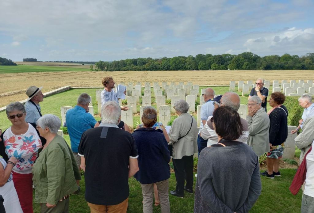 La promenade culturelle et conviviale de l’association « De la Somme à Bellefontaine » a permis de faire découvrir de façon ludique aux adhérents de l’association 20 sites, plus ou moins connus, sur les territoires des communes d’Ovillers-La Boisselle, Thiepval, Beaumont-Hamel, Contalmaison, Mametz, Longueval, des territoires qui étaient occupés par les Allemands avant le 1er juillet 1916 et ont été repris par l’armée de l’empire britannique, au prix de sacrifices humains inimaginables.
