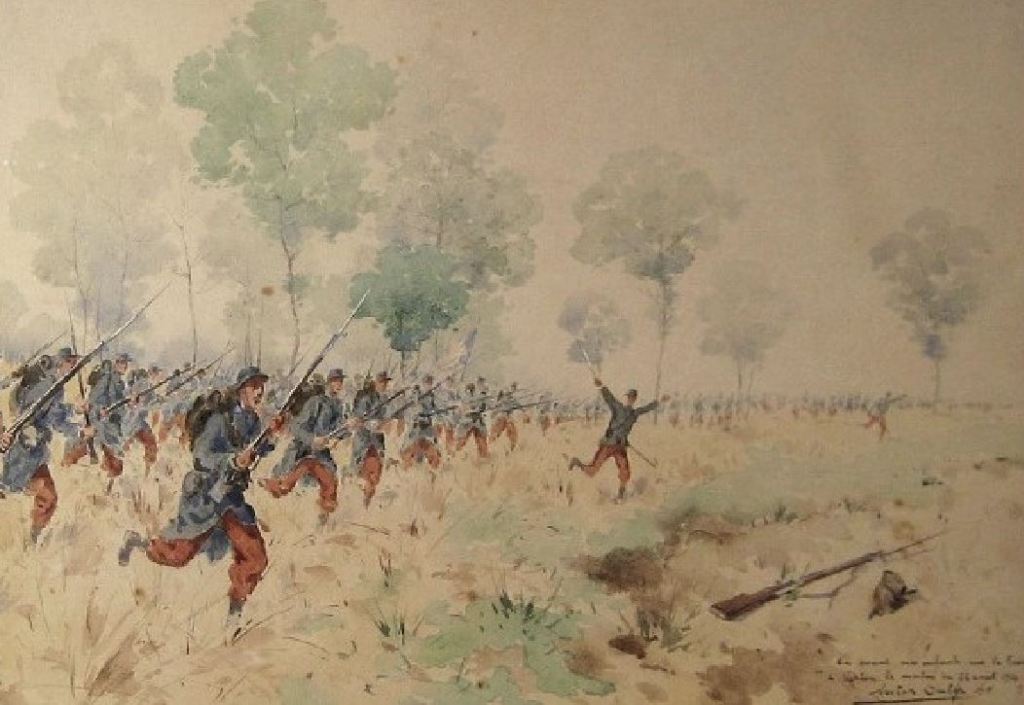Le 22 août au matin, à 7h30, en arrivant à proximité du village de Bellefontaine, en Belgique, les hommes du 120e RI sont déjà fatigués. La longue marche de la veille pour rejoindre la frontière belge, la très courte nuit dans les granges de Meix-devant-Virton et les 4 km parcourus à pied, avec les lourds sac-à-dos et fusil dans la moiteur d’un chemin enveloppé d’un épais brouillard, ont fini d’épuiser les organismes. Pourtant, l’ordre est donné de traverser la longue plaine du Radan d’un bon pas car les combats doivent avoir lieu beaucoup plus loin…