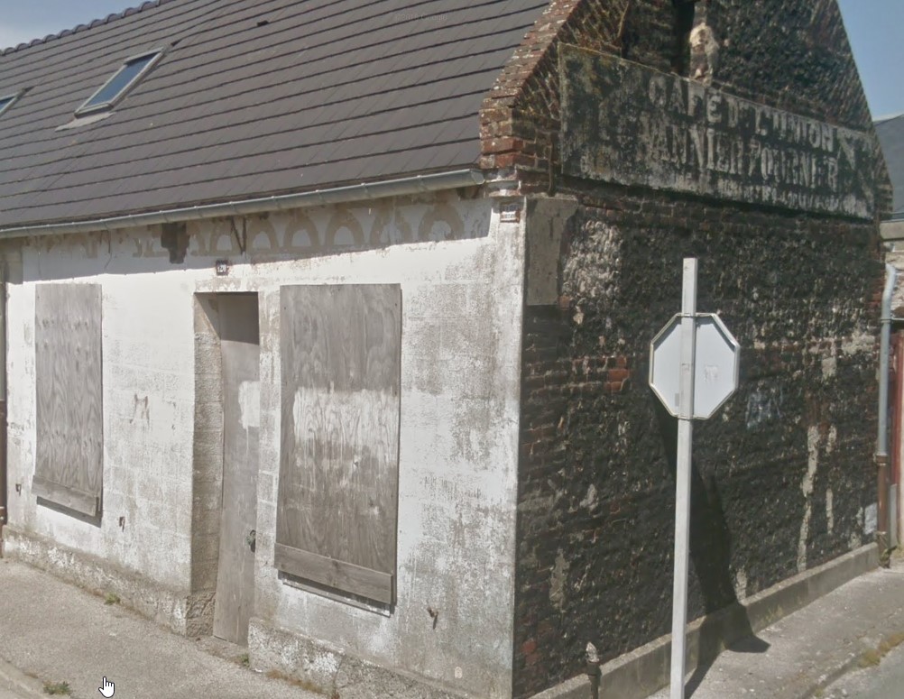 Affiche publicitaire mentionnant « Café de l’Union – Vannier-Fournier » visible en entrant à Cayeux par la rue principale (maison située à l’angle de la Rue Prélet et d’actuelle Rue du Maréchal Foch, face à l’ancienne maison des VANNIER)