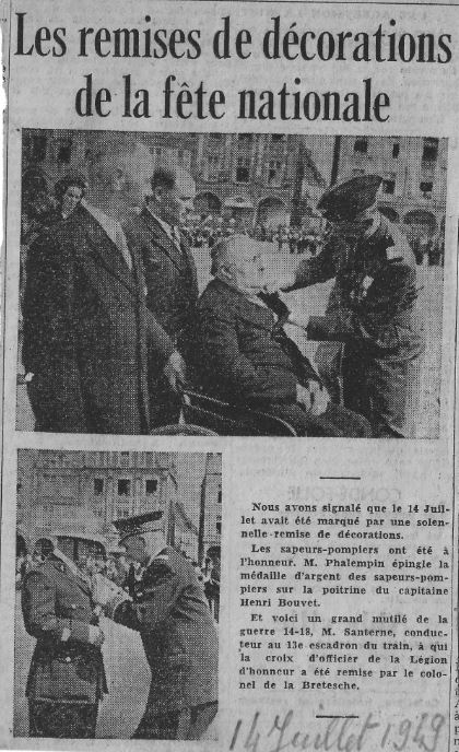 La commission médicale diagnostique, en 1924, une « fracture de l’apophyse épineuse de la 4e vertèbre lombaire entraînant une gêne dans la marche » consécutive à la blessure par éclat d’obus. En 1932, Archange est réformé définitivement par l’Armée pour « paraplégie spasmodique avec troubles sphinctériens ». La situation se dégrade. Un an plus tard, les médecins notent que « la marche et la station debout sont de plus en plus difficiles ». En 1938, le constat est terrible : Archange SANTERNE « a besoin de l’assistance d’une tierce personne ».