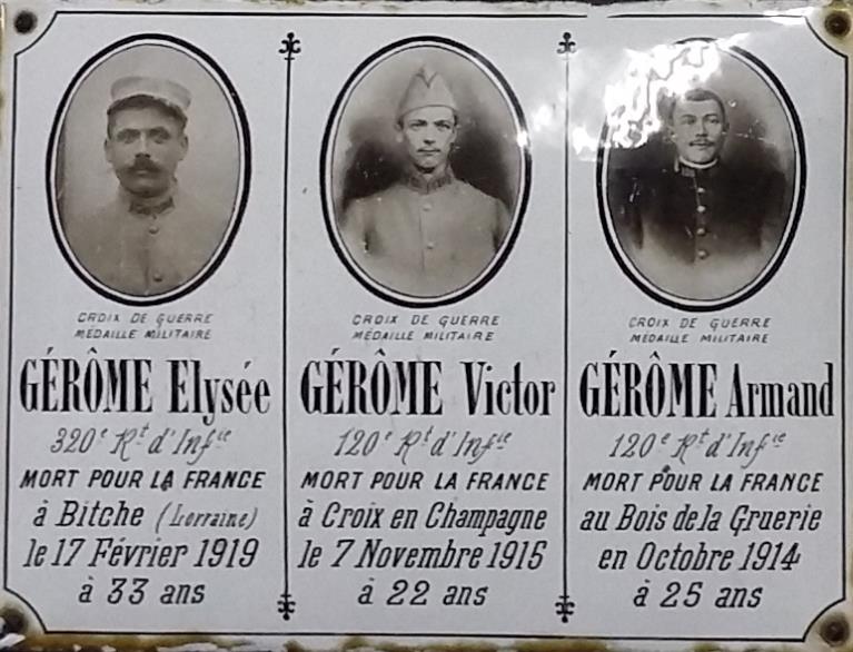 Aucun d’entre eux n’avaient remarqué que sur le monument aux morts du village figurait à cinq reprises le patronyme de JEROME. Parmi eux, trois étaient frères. La dramatique histoire de la fratrie JEROME a été présentée aux enfants.