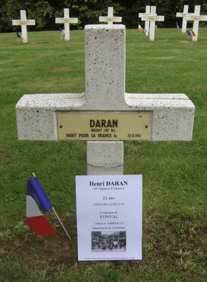Le 22 août 1914, la grande offensive lancée par le général Joffre est un échec. Plus de 25 000 Français perdent la vie. Le 120e RI est un des régiments de la région militaire d’Amiens les plus touchés. Sur les 3 000 hommes partis au combat dans la plaine du Radan à Bellefontaine, petit village belge situé à une dizaine de kilomètres de la frontière, plus de 1 000 sont mis hors service. Le nombre de tués dans le régiment est évalué à près de 600.
