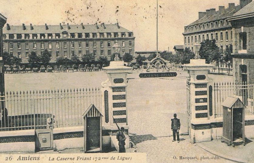 André DUPAYS, Fernand DUCOIN et Maurice PATRY se connaissent bien. Ils ont passé une partie de leur jeunesse ensemble et sont aujourd’hui employés tous trois chez les frères SAINT dans l’usine des Moulins-Bleus de L’Étoile. Ils ont été heureux d’apprendre qu’ils allaient vivre deux années ensemble entre les murs de la caserne Friant. La ville d’Amiens n’est pas très éloignée mais l’univers d’une caserne n’a rien à voir avec celui d’une usine. Les trois copains de L’Étoile vont apprendre à se connaître. En ce 8 octobre 1912, les trois garçons descendent sur le quai de la gare Saint-Roch et s’engagent dans l’avenue Foy. Des centaines de jeunes appelés les imitent.