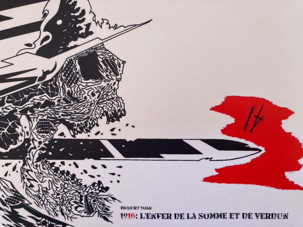 Un jeune artiste local, Yoan BICOURT, est venu présenter sa bande-dessinée « 1916: l’enfer de la Somme et de Verdun » ainsi que plusieurs de ses oeuvres évoquant la souffrance des combattants de deux camps pendant la Grande Guerre (contacter l’auteur)