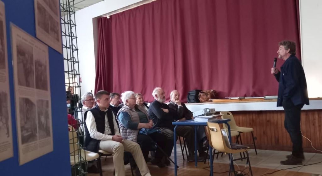 Dans l’après-midi, une conférence animée par Xavier Becquet, le président de l’association, a réuni plus de 40 personnes. Des parcours de jeunes hommes de la Somme qui avaient « 20 ans en 1914 » ont été présentés. Un focus a été fait sur le secteur de Péronne et de Doingt-Flamicourt. Le sort de la famille BUIRE, de Doingt, a été évoqué. Le père et deux des trois seuls enfants de la famille sont morts pendant la Grande Guerre. On y a parlé également des frères DAMAY de Péronne, revenus tous quatre vivants mais o combien abîmés par la guerre ou de Maurice HADENGUE, jeune homme d’Eterpigny, fusillé pour l’exemple dès le début de la guerre.