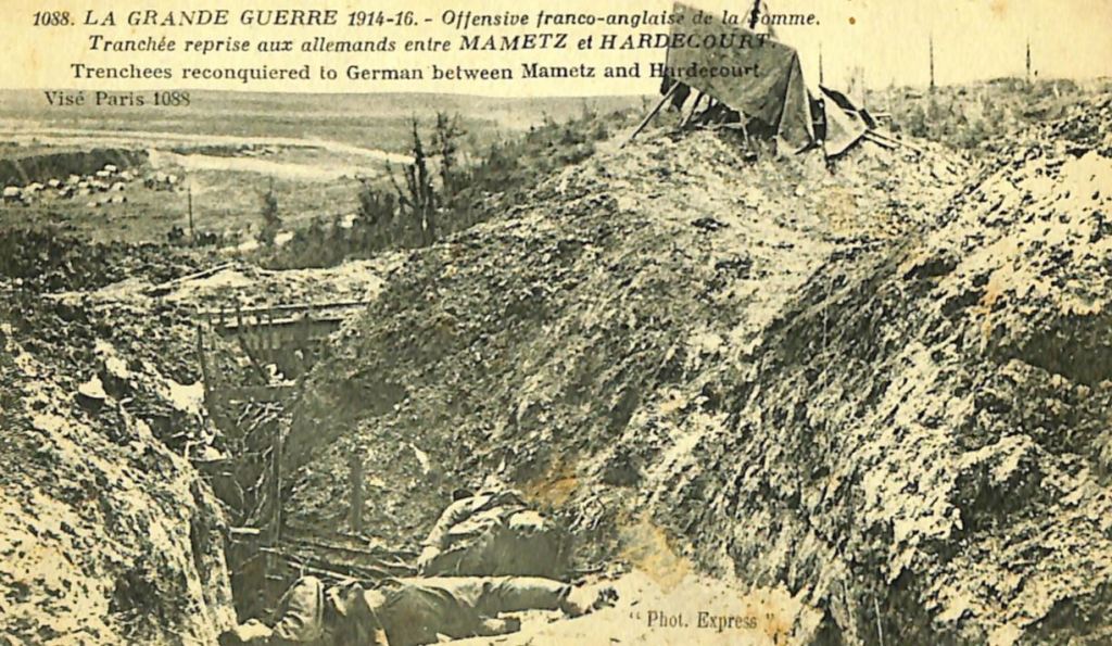 Après la Meuse, Emilien connaît ensuite les champs de bataille de Champagne. Le 9 octobre 1915, près de Tahure, il est blessé à la cuisse gauche par éclats d’obus. Quand il revient au front quelques mois plus tard, le 87e RI s’apprête à rejoindre le département de la Somme. En juillet 1916, les hommes du 87e arrivent dans le secteur de Belloy-Barleux près de Péronne. Le 15 septembre, ils mènent une attaque et parviennent à conquérir la tranchée 338 et la tranchée de Calmon. Les pertes sont nombreuses. Emilien CHRISTOPHE est blessé à la main gauche et évacué vers l’arrière.
