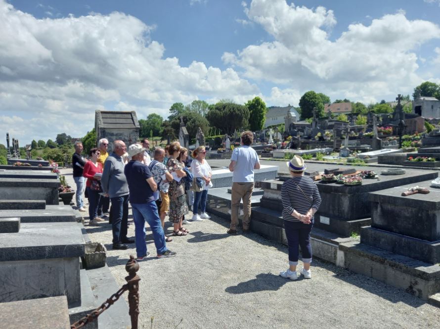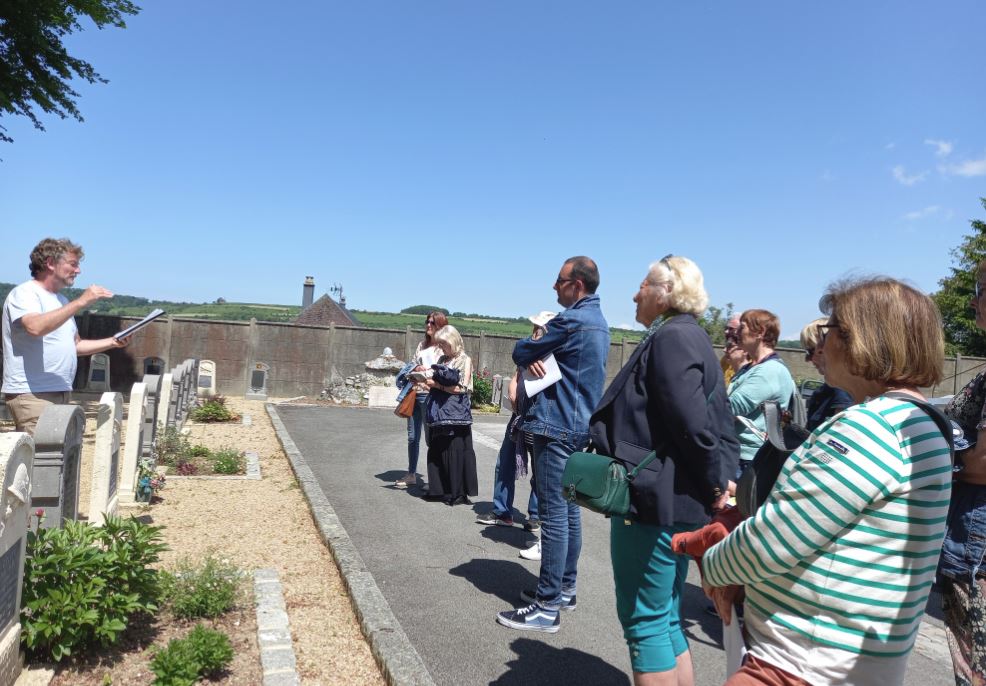 A travers le passage devant certaines tombes de soldats morts pour la France dans le cimetière communal, les visiteurs ont découvert des aspects méconnus de la Grande Guerre et ont mieux compris l’impact qu’ont eu ces morts sur la population locale après la fin du conflit.