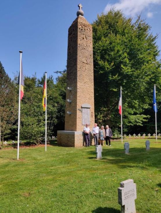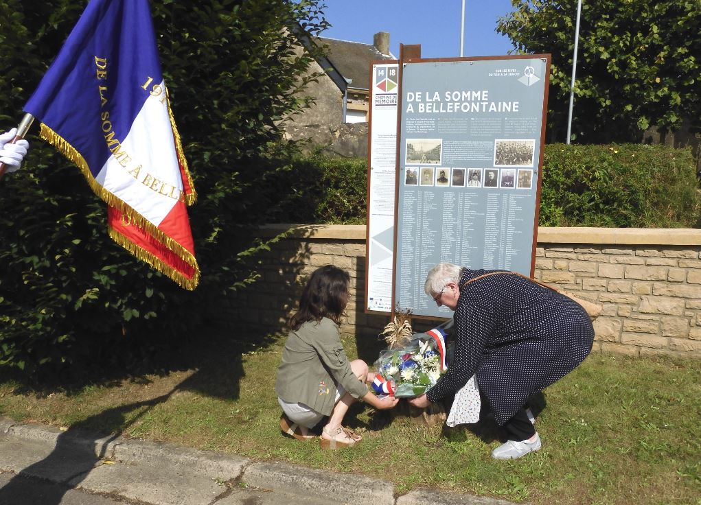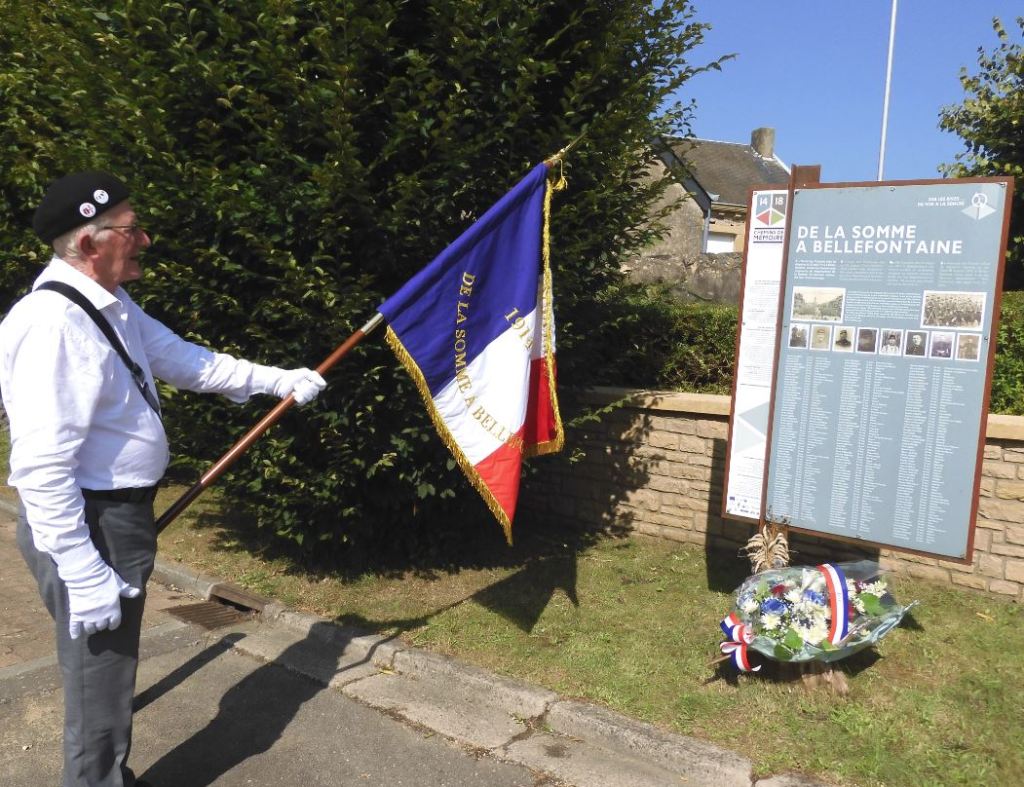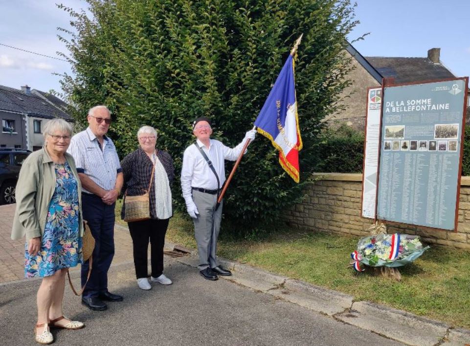 Monsieur René BASTIN, représentant local du devoir de mémoire, attendait les 4 représentants « De la Somme à Bellefontaine » ce jeudi 22 août 2024 devant le monument mémoriel honorant les victimes samariennes de la Bataille des Frontières d’il y a 110 ans, jour pour jour.