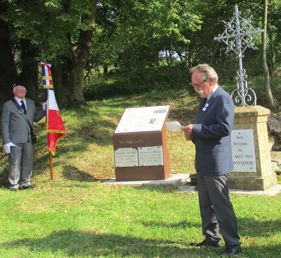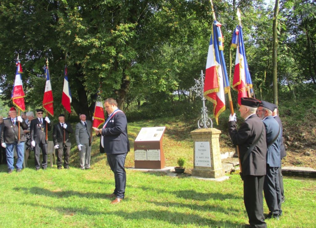 C’est sous un soleil éclatant que la cérémonie a été ouverte dès 11h00 par Monsieur Loïc Lalonde, maire de la commune de Saint-Pierremont devant le lieu mémoriel du hameau de FONTENOIS.