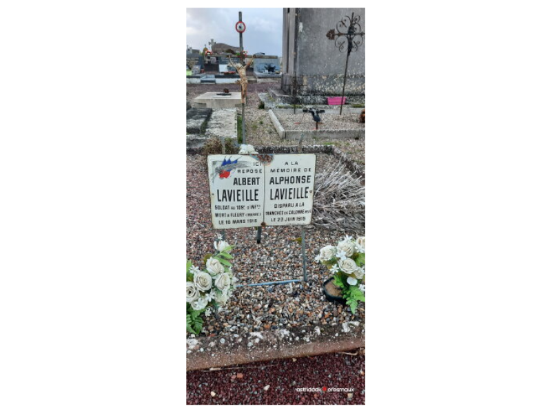 La famille LAVIELLE a perdu deux garçons, Alphonse et Zéphir. Ce dernier repose dans le cimetière communal d’Oresmaux avec le prénom Albert.