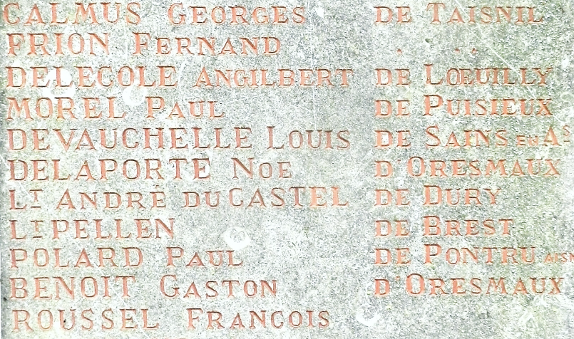 – Léon TELLIER est né le 3 juin, dans le quartier de Longpré, ses parents et son frère aîné Michel sont agriculteurs. Comme ses camarades de la classe il est incorporé le 18 décembre, au 120ème Régiment d’Infanterie. Il part aux armées le 21 avril 1915 et fait partie des 227 recrues qui rejoignent le 120ème stationné au village de Fresnes-en-Woëvre (Meuse). Il va combattre aux Eparges, puis en Champagne, en 1916 c’est également autour de Verdun en avril, puis l’Oise en juin, avant la bataille de la Somme dans le Santerre, proche de chez lui. Il rentrera à Oresmaux en août 1919 avec une citation à l’ordre du régiment.