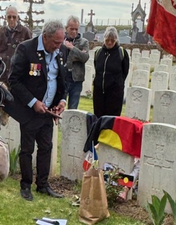 Une visite du cimetière militaire britannique de Daours, fut proposée sous la conduite d’un membre de l’Office de Tourisme de Corbie, avant de se rendre auprès de la sépulture du soldat aborigène.