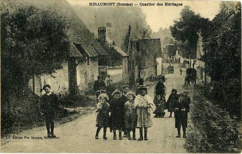 En 1906, rue des Héritages, à Miraumont, Marie DEMOULIN, la mère de famille est ouvrière agricole chez FRUITIER, et son premier fils Félix est domestique chez le même employeur.