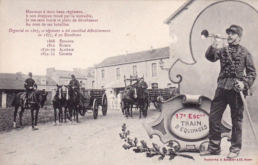 A partir de février 1917, il est affecté dans différents régiments d’Escadrons du Train.